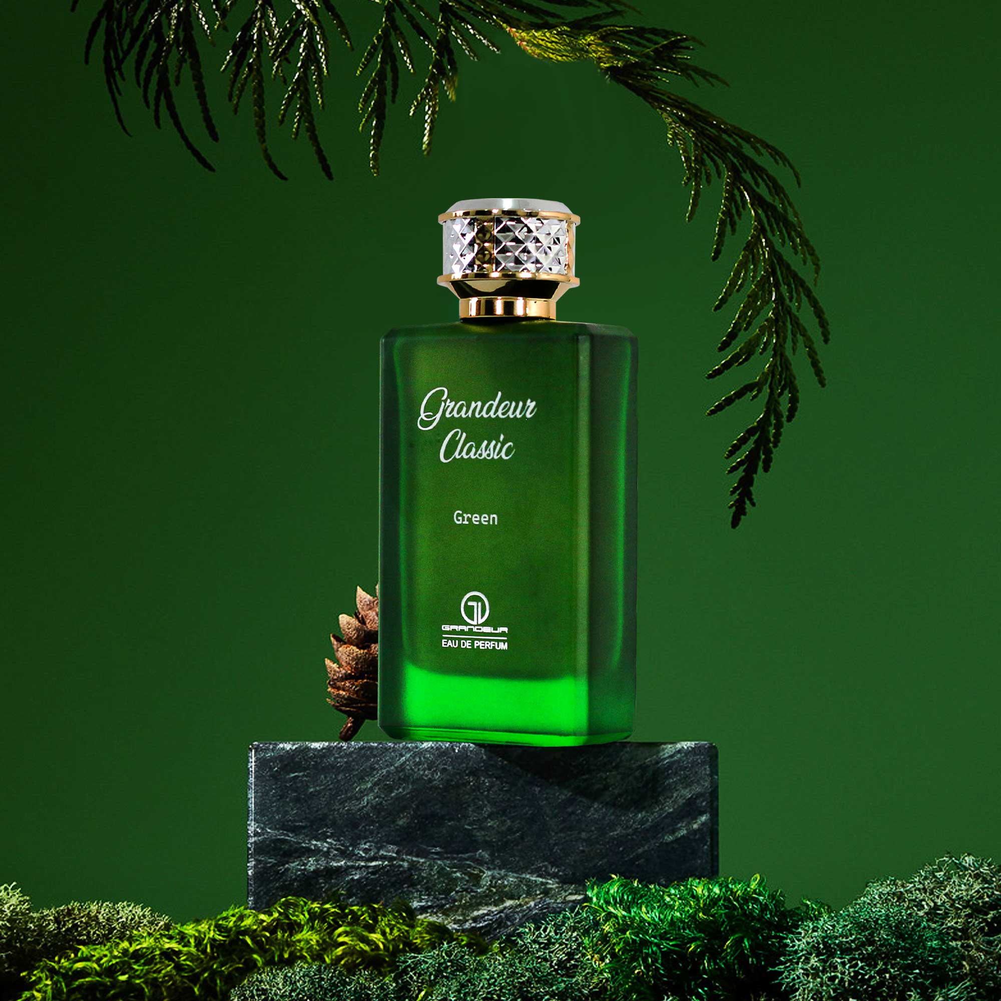 Grandeur Classic Green is a versatile fragrance for both women and men. It opens with a vibrant blend of saffron and bergamot, leading to a heart of Turkish and Moroccan roses, complemented by ylang-ylang. The base is a rich tapestry of cedar, sandalwood, amber, musk, patchouli, and oakmoss, creating a scent that is both fresh and enduring.